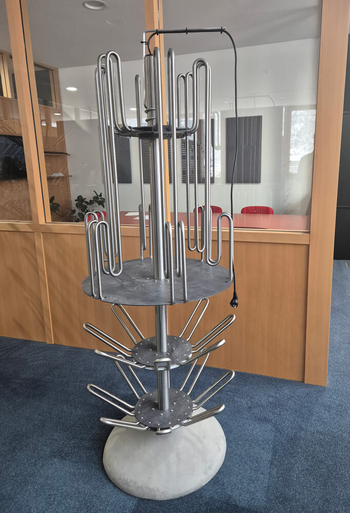 Der freistehende Schuh- und Kleidertrockner kombiniert durchdachte Funktionalität mit hoher Flexibilität und langlebiger Qualität. Die Konstruktion ermöglicht einen Einsatz ohne Wandmontage und bietet dadurch maximale Freiheit bei der Platzierung im Raum.